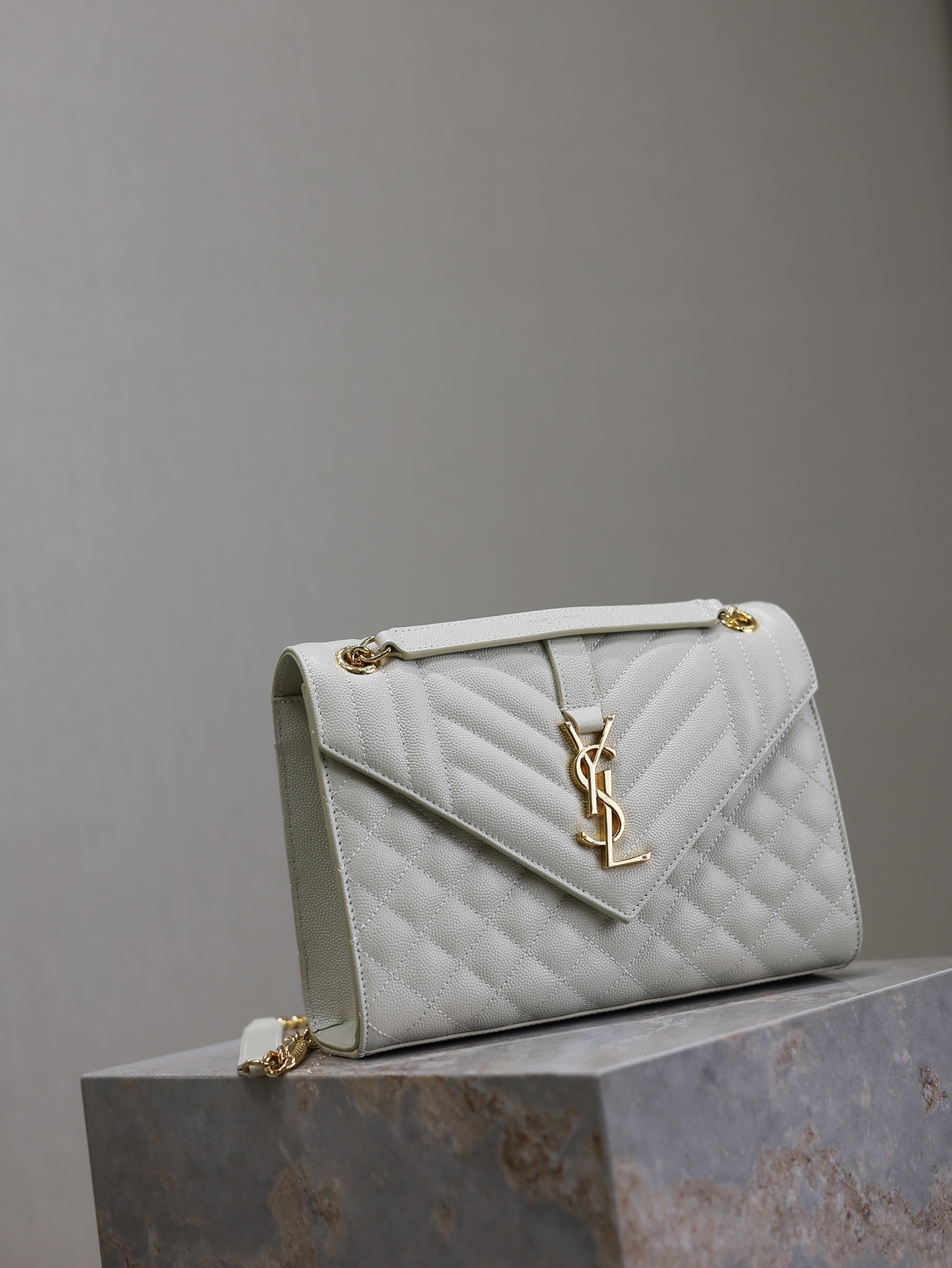 SAINT LAURENTENVELOPE MEDIUM IN QUILTED GRAIN DE POUDRE EMBOSSED LEATHER