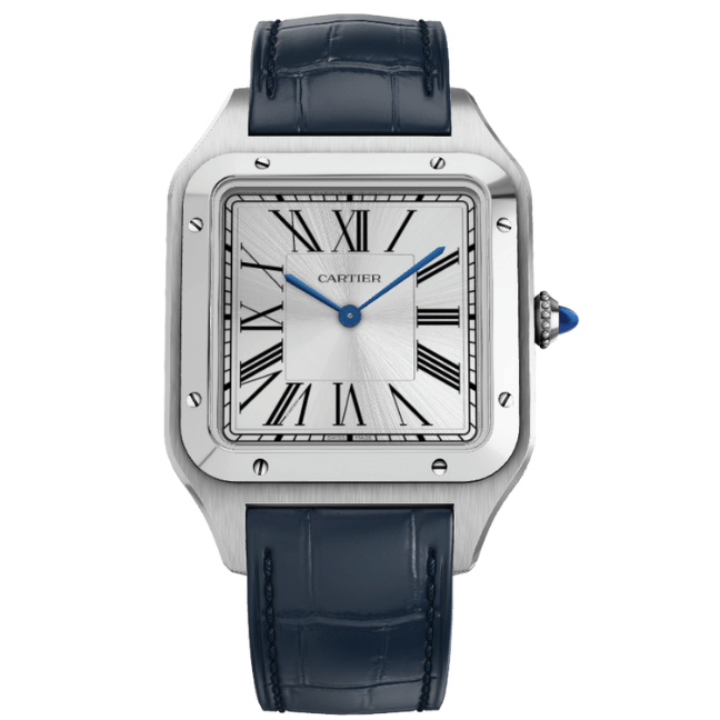 The counter - synchronized aluminum - magnesium alloy solid head grain leather strap, Swiss high - power quartz movement + Cartier A - level special splint, CNC - carved three - level silver - plated dial, track - style hour markers with slender three - dimensional Roman numeral hour indices. The le..